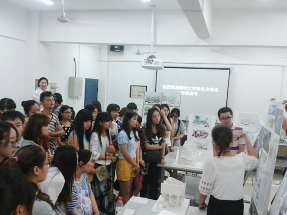 城市设计系精心组织来访的韩瑞大学师生参观了装潢和造型设计实训室,并向来访师生展示了我系装潢艺术设计专业学生的作品。韩瑞大学的教授们仔细观赏了我校展出的每一件作品,并给予了高度的评价。我校师生同时也观赏了韩瑞大学带来交流展出的设计作品,接触了不同文化背景下的设计作品和理念。交流活动过程中,我系学生与韩瑞大学学生在实训室共同拿起画笔进行了手绘作品的创作并且互相交换了作品以作纪念。同学们表示通过此次交流活动不仅开阔了两国年轻人的视野,而且增进了彼此友谊。