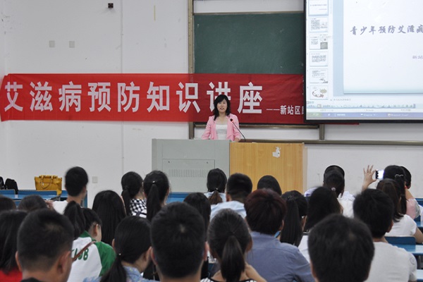 目前,艾滋病已成为严重威胁人类健康的公共卫生问题。为提高广大师生健康意识和身体素质,培养学生正确的健康观念和健康行为,5月27日中午,新站区磨店卫生院院长窦洪水、专家熊玉玲一行应邀来我院为广大同学进行艾滋病防治专题讲座。