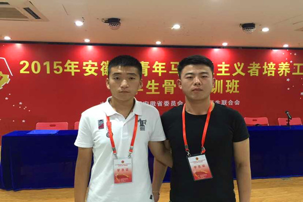 为加强大学生骨干队伍建设,8月25日至29日,学院团委选派朱良志、庙冬冬两名学生骨干参加了由团省委、省学联联合举办的2015年安徽省青年马克思主义者培养工程大学生骨干培训班,并顺利结业。