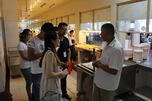 在学院第一、第二食堂,伙食管理委员会的学生干部对前厅后厨的卫生状况、货物的摆放存储情况、各类食品的生产及保质期限、工作人员健康证的持有情况等进行了仔细检查。检查发现,食堂方面在关系到食品安全的各环节工作都有严格的安全保障措施,采购的食品必须经过检验;工作人员必须持健康证上岗,到岗前必须进行消毒,并配戴帽子、一次性口罩和手套;所有餐盘必须严格按照“一洗”“二清”“三消毒”的流程进行清洗。总体来看,学院食堂的卫生状况良好,操作流程符合要求。