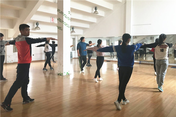 这支由14级、15级不同专业学生组成的队伍,由兼任教练员的体育教师精心选拔组建而成。每天放学后,教练员都会对队员们进行严格训练,积极备战全省大学生健美操比赛。