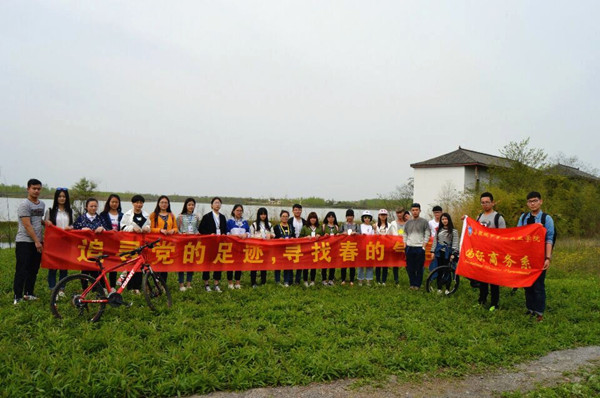 4月9日,该系团委组织团员代表到少荃湖畔进行校外拓展,开展“追寻党的足迹,寻找春的气息”骑行活动。