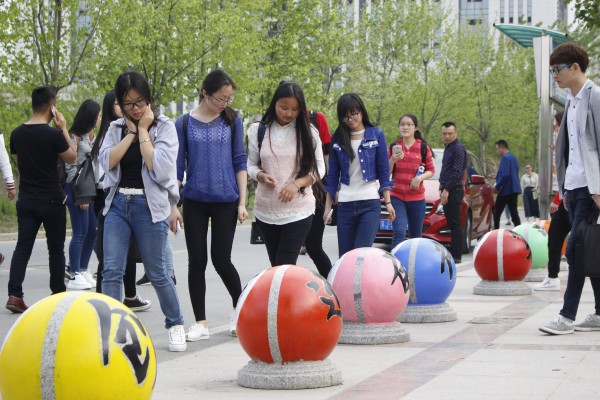 4月15日,城市设计系组织学生为校园里的路障石球进行了设计美化,为校园增添了一道亮丽的风景线。