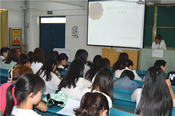 诚信教育是大学生道德教育的重要内容。国际商务系将结合诚信教育主题系列活动,坚持多层面地展开诚信教育,激励同学们培养诚信品质,传承诚信美德,诚信于人、诚信于社会、诚信于国家。