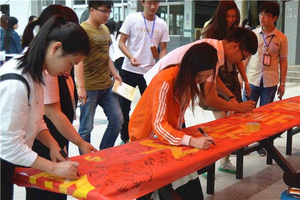 为了带动更多人践行并传播诚信理念,5月18日,国际商务系团委在食堂门口拉起了红色条幅组织开展了面向全院的签名活动,号召大家增强诚信意识。活动中,不仅各系同学积极参与,学院的领导和老师们也签下了自己的名字,表示要与大家一起营造良好的校园诚信环境。