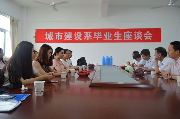 夏雨绵绵,2013级毕业生依然冒雨如约回到了母校,进行最后的告别。7月1日上午,城市建设系毕业生座谈会如期举行,院长朱庄宗出席,院办负责人、城市建设系领导和20名毕业生代参加座谈会。