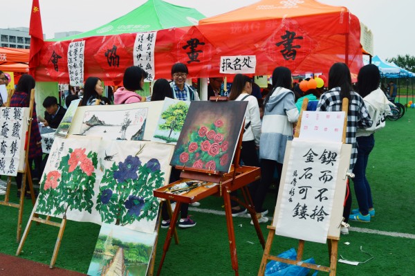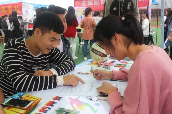 10月11日至12日,在院团委的统一组织下,我院一年一度的学生社团招新活动在足球场热闹上演。 招新现场,32个学生社团竞相展示各自的社团文化和活动成果,在社团介绍和作品展示外,不少社团还设立了互动点,积极邀请新生们尝试参与到活动中来。听了招新负责人们对社团情况、开展活动内容和意义的耐心讲解,不少新生找到并报名加入了自己心仪的社团,成为了我院校园文化建设的新鲜血液。 学院领导和社团相关指导老师也到现场对各社团招新工作进行询问和指导。