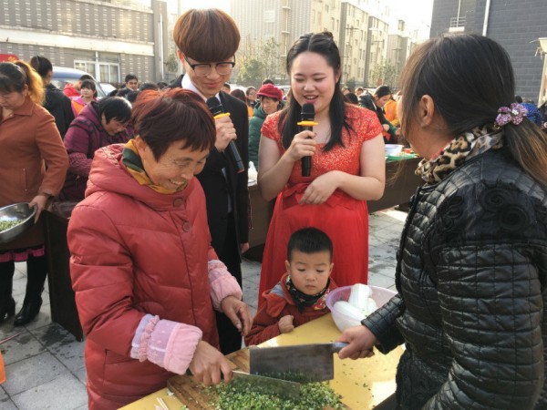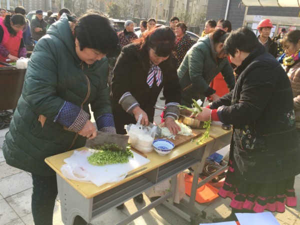 包饺子大赛中,阿姨们纷纷拿出看家绝活,放馅、捏褶、摆盘,一气呵成。虽然手上动作你追我赶犹如战场,但大家脸上挂着的笑容却让寒冷的冬天变得温暖。