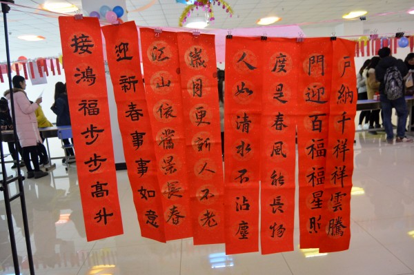 欢声笑语中,比游戏和礼品更让人难忘的是师生间浓浓的温情。书画协会为老师们献上春联,感谢老师们一年来的辛勤付出;老师们也祝愿同学们在新的一年里能够学习进步,天天开心。