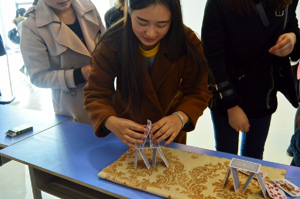 搭纸牌、踢毽子、猜灯谜、转呼啦圈……12月22日的西辅楼里,加油声与欢笑声响成一片,老师们和同学们在“倾心安城·知识竞猜”的活动现场,一起猜谜,共同闯关,相互鼓劲,其乐融融。