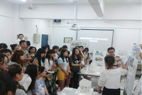 城市设计系精心组织来访的韩瑞大学师生参观了装潢和造型设计实训室,并向来访师生展示了我系装潢艺术设计专业学生的作品。韩瑞大学的教授们仔细观赏了我校展出的每一件作品,并给予了高度的评价。我校师生同时也观赏了韩瑞大学带来交流展出的设计作品,接触了不同文化背景下的设计作品和理念。交流活动过程中,我系学生与韩瑞大学学生在实训室共同拿起画笔进行了手绘作品的创作并且互相交换了作品以作纪念。同学们表示通过此次交流活动不仅开阔了两国年轻人的视野,而且增进了彼此友谊。