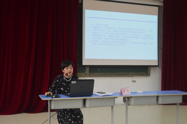 培训中,学生资助管理中心刘丽从生源地信用助学贷款的办理、国家奖助学金的申请与评定和不诚信的严重后果等几个方面,对2017届生源地贷款毕业生诚信教育暨还款知识、学院资助工作业务等内容进行了说明。