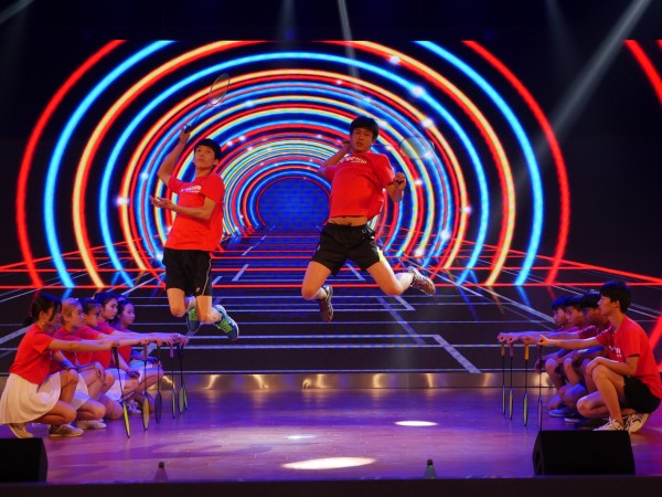 下半段的演出开始,由绿色环保协会带来了手语《国家》,还有羽毛球、篮球、足球、排球四个协会带来的《全球风暴》,以其独特的视觉效果引来现场观众的阵阵欢呼。