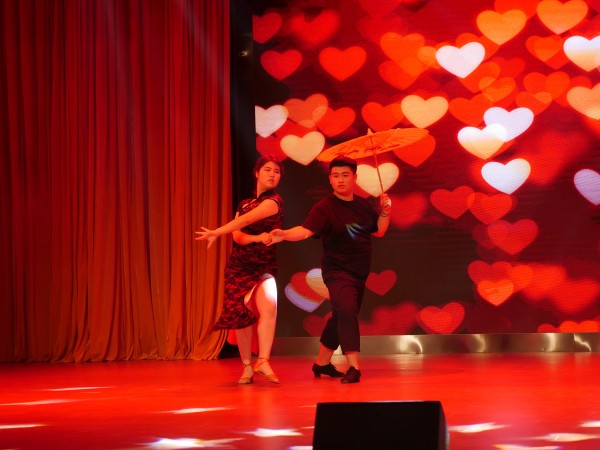 随着舞台灯光的变暗,来自安徽农业大学经济技术学院艺术团的黄伟同学带领这他的舞伴们登场了,他曾经获得过青少年标准舞公开赛第二名的好成绩,这次他和舞伴们带来的是《玫瑰玫瑰我爱你》,动作时而优雅,时而阳刚,随着他最后的旋转接劈叉收场,台下成为了惊叫和掌声的海洋。