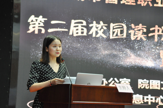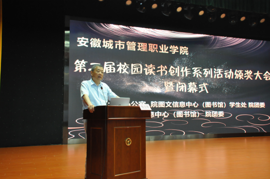 颁奖大会包括四项议程,第一项由院纪委书记陈力致辞,他对本次系列活动整体给予了高度评价和认可,希望今后一届一届继续开展下去。讲话中他以2014年习近平总书记在俄罗斯接受记者采访时所讲的话为引,期望学院师生今后可以多多走进图书馆,热爱阅读,热爱创作,为把学院建设成书香型校园而共同努力。