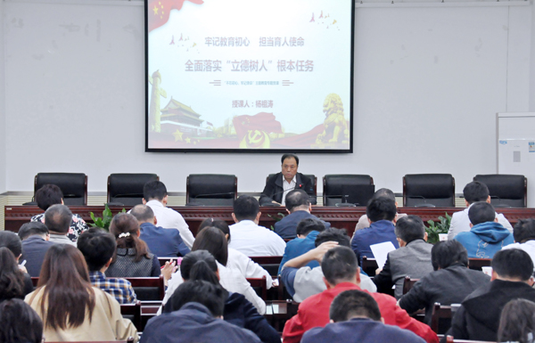 杨祖涛指出,此次党课报告是为了贯彻落实习近平总书记系列重要讲话精神,结合工作和调研实际,扎实推进“不忘初心、牢记使命”主题教育,全面提高学校党建工作质量,为学校事业发展提供坚强的政治思想组织保证。