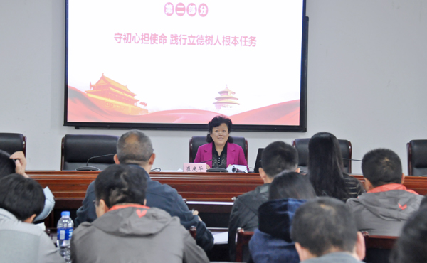 崔庆华强调,党的十九大报告中指出“要全面贯彻党的教育方针,落实立德树人根本任务”。“立德树人”不仅是教育的根本任务,也是教育的初心和使命。“立德树人”就是坚持以德育人,德育为先,通过正面教育来引导人、感化人、激励人,让我们教育出来的学生有一颗中国心,心里装着中国梦,让学生有报效祖国、服务社会、成就人生的能力。
