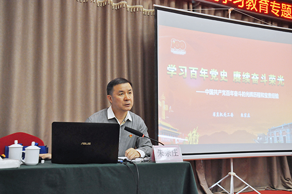 读书班邀请省直机关工委副书记朱宗庄作题为《学习百年党史,赓续奋斗荣光》的辅导报告,报告从深入学习习近平总书记关于党史学习的重要论述、充分认识开展党史学习教育的重大意义,认真研读党史基本著作、全面了解党的历史四个阶段划分,中国共产党百年历史积累的宝贵经验,党史学习教育中应把握的几个问题四个方面进行了生动的阐述。通过辅导报告帮助大家铭记光辉历史、践行伟大精神,以党的奋斗历程和伟大成就鼓舞斗志、明确为民报国的奋斗方向。