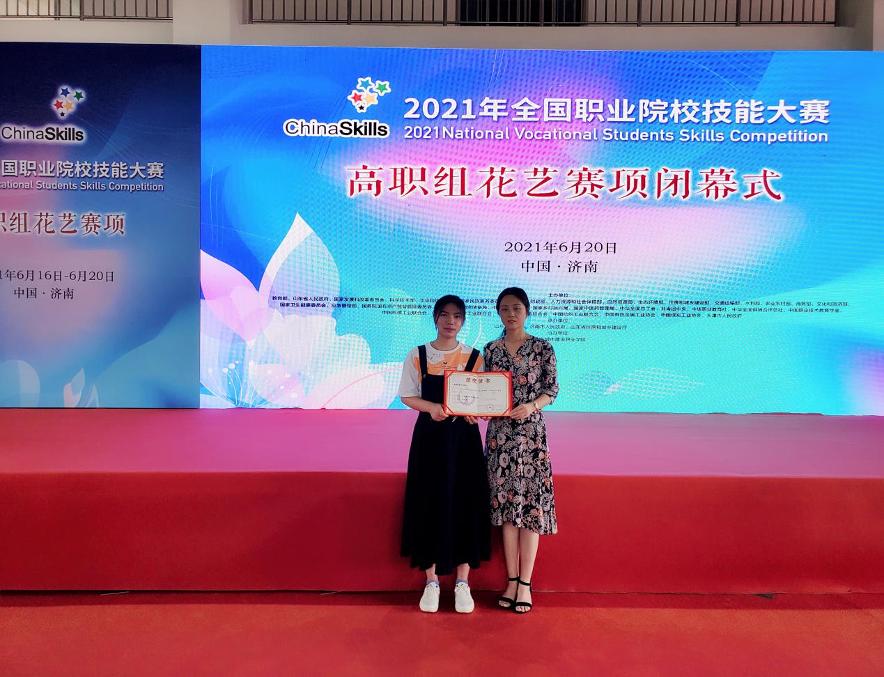 6月16日至20日,2021年全国职业院校技能大赛高职组“花艺”赛项在山东省济南市隆重举办。经过三天的激烈角逐,我校城市建设学院学生徐文雯在教师惠惠的指导下,荣获赛项三等奖。