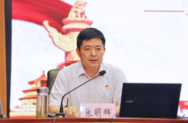 张明辉代表学校党委向受表彰的先进集体和个人表示热烈祝贺!向为学校各项事业发展付出辛勤努力的党员师生表示衷心感谢和节日的问候!他以《学深悟透百年党史砥砺初心接续奋斗坚定不移推动学院教育事业高质量发展》为题,从充分认识开展党史学习教育的重大意义切入主题,以中国共产党一百年的光辉历程和历史性贡献为主线,带领大家回顾了中国共产党成立以来职业教育发展的主要历程,全面解析了全国职业教育大会精神。