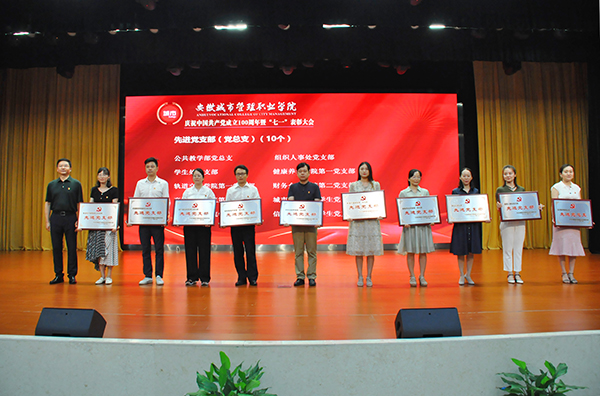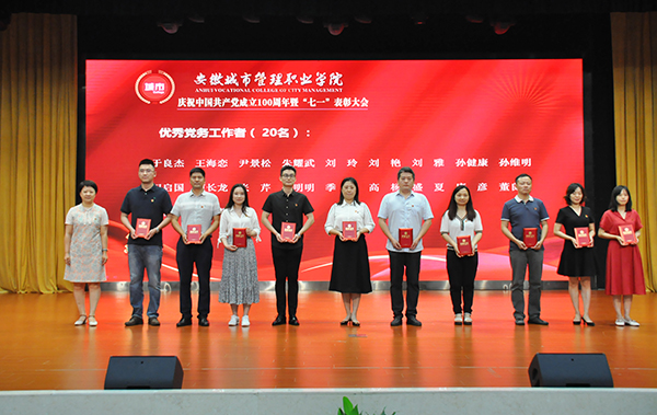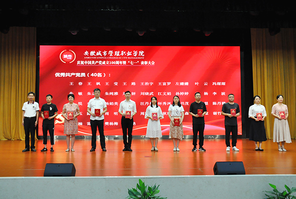 会上,张明辉带领全体参会党员重温了入党誓词,校党委领导班子成员为受表彰代表颁发奖牌和荣誉证书。公共教学部党总支等10个基层党组织获得“先进党支部(党总支)”荣誉称号,王春等40名同志获得“优秀共产党员”荣誉称号,于良杰等20名同志获得“优秀党务工作者”荣誉称号。聂杨、程良燕、赵秋瑾三位同志作为受表彰的“两优一先”代表分别作了交流发言。