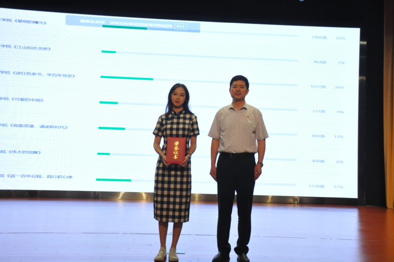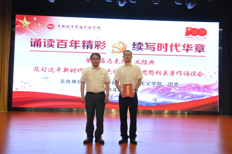 在本次诵读会上,各参赛队伍以我们党百年奋斗历程为主题,诵读了《习近平讲故事》、《敬告青年》、《可爱的中国》等重要著作及文章,经过激烈的角逐,城市建设学院代表队荣获一等奖,学前教育学院和信息技术学院代表队获得二等奖,轨道交通学院、健康养老学院、商贸管理学院、财务金融学院代表队获得三等奖;中专部荣获优秀组织奖;校团委荣获特殊贡献奖;轨道交通学院代表队以网络票选第一获得最佳人气奖。