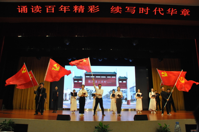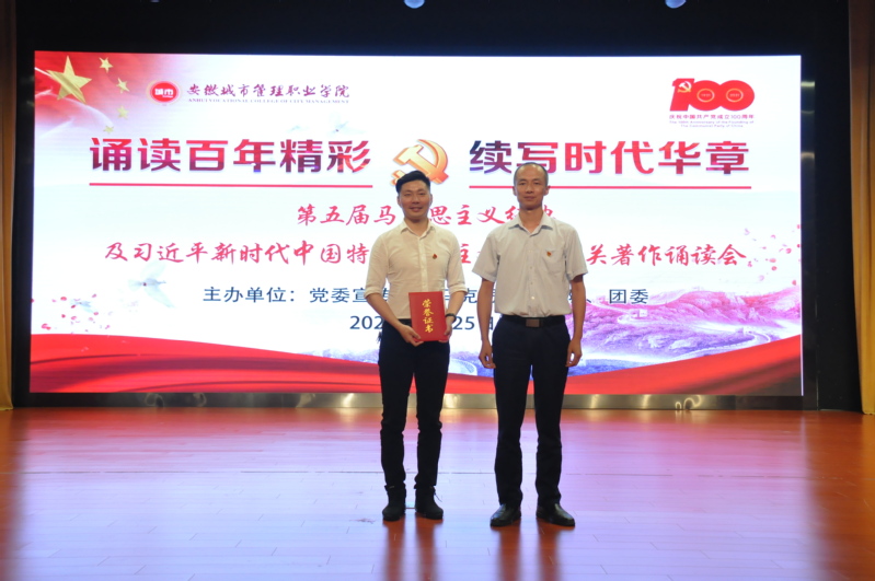 为庆祝中国共产党成立100周年,深入开展党史学习教育,进一步加强马克思主义信仰教育,丰富大学生思想政治教育第二课堂,倡导广大师生从百年党史中汲取智慧和力量,展现师生昂扬的精神风貌,6月25日下午,学校在西附楼报告厅举办了“诵读百年精彩,续写时代华章”第五届马克思主义经典暨习近平新时代中国特色社会主义思想相关著作诵读会。校领导张明辉、刘瑾、章小槟、秦少锋、聂宗瑶出席活动并为获奖队伍颁奖。