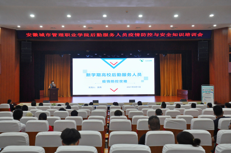为进一步提升学院后勤服务质量,有效地加强新冠疫情防控,总务处多措并举,提高学院第三方后勤工作人员的业务素质和新冠病毒防控知识的掌握。9月1日,总务处邀请安徽众安第三方食品安全监管服务有限公司专家到学院作《新学期高校后勤服务人员疫情防控攻略》为主题的培训。总务处和第三方后勤工作人员426人参加培训。