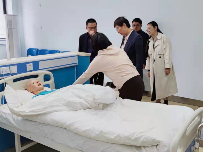座谈会开始前,刘瑾等学院领导陪同张亚一行参观了我校校园环境和老年服务、护理等专业实训室。