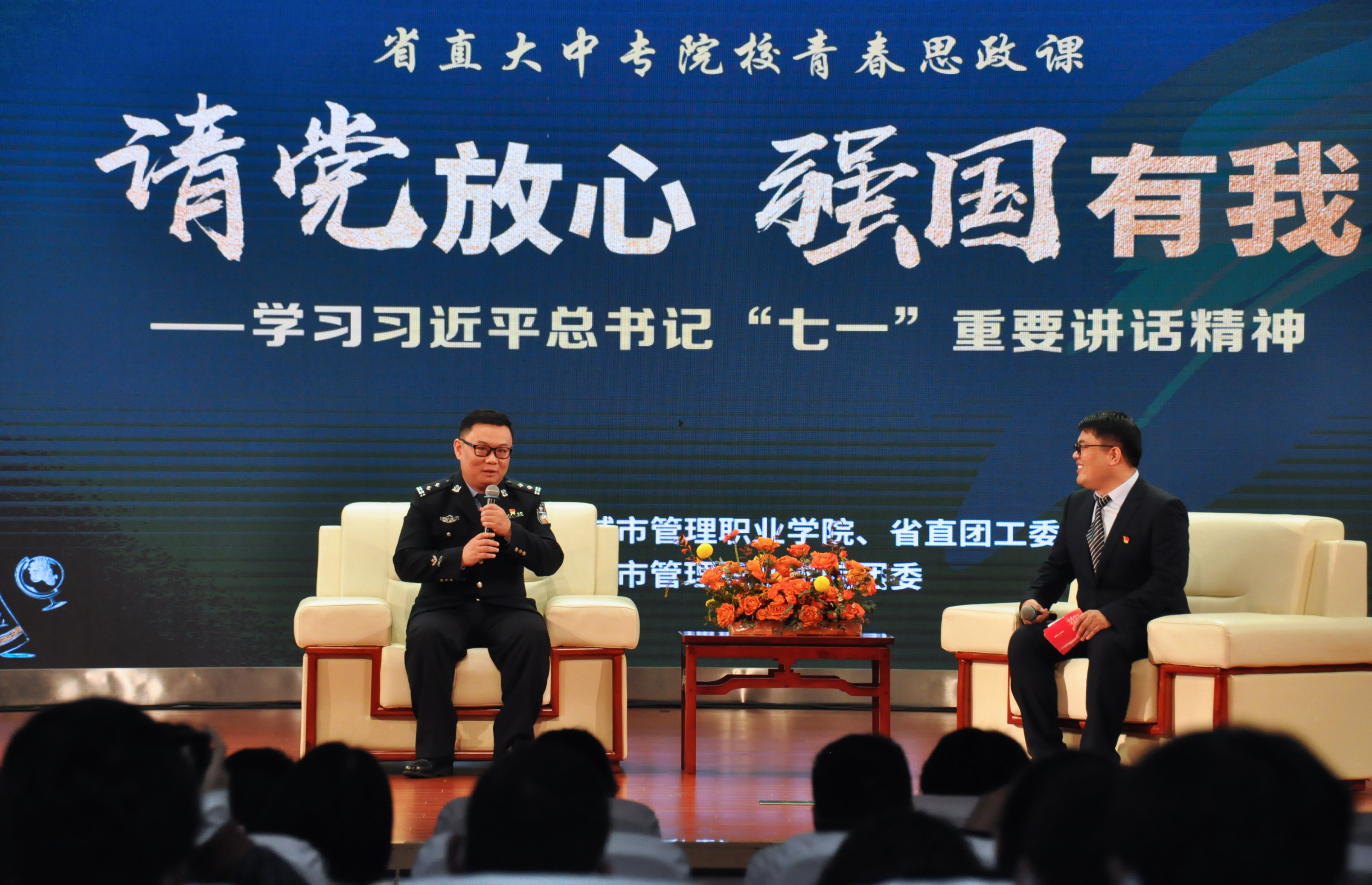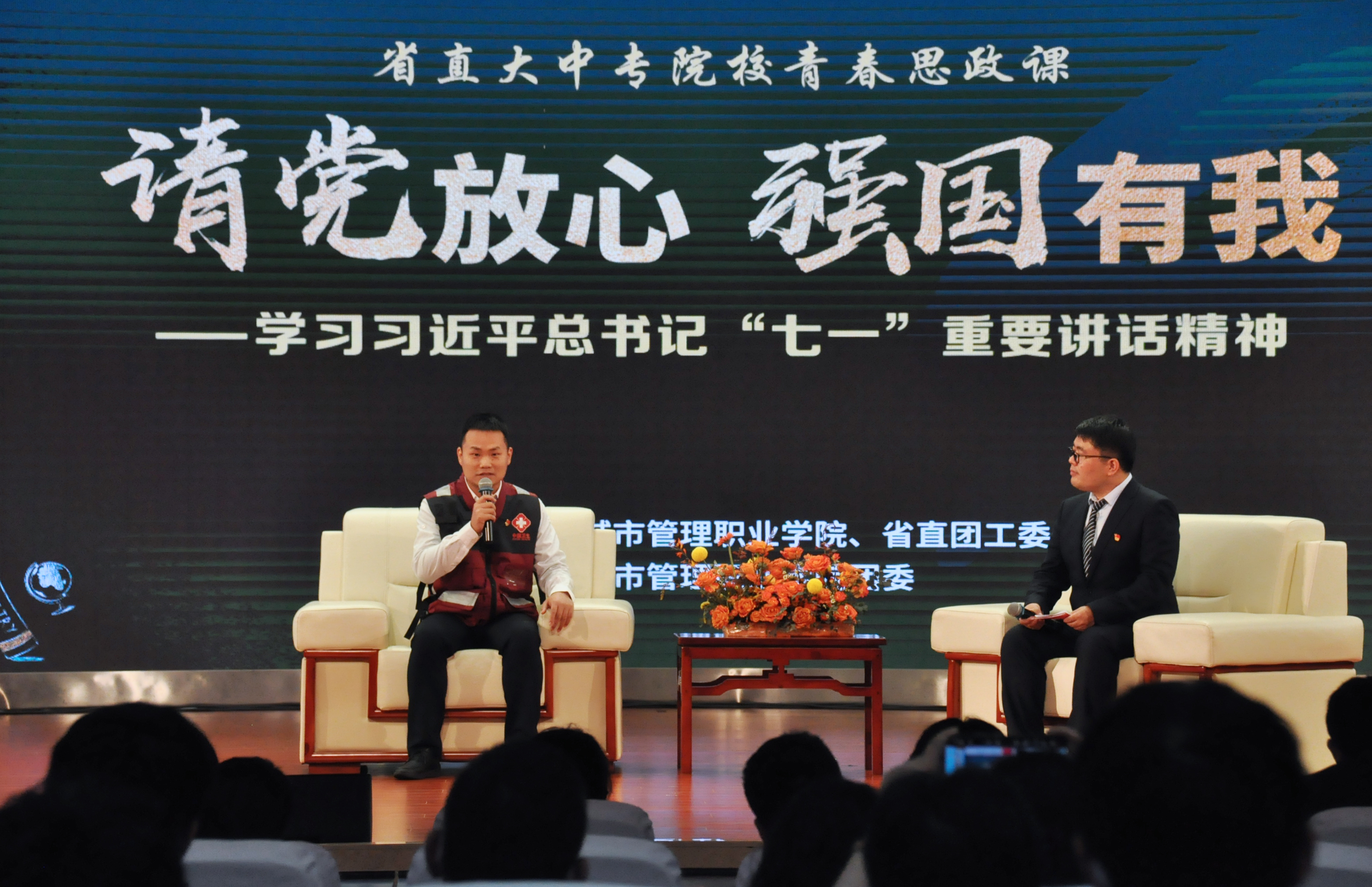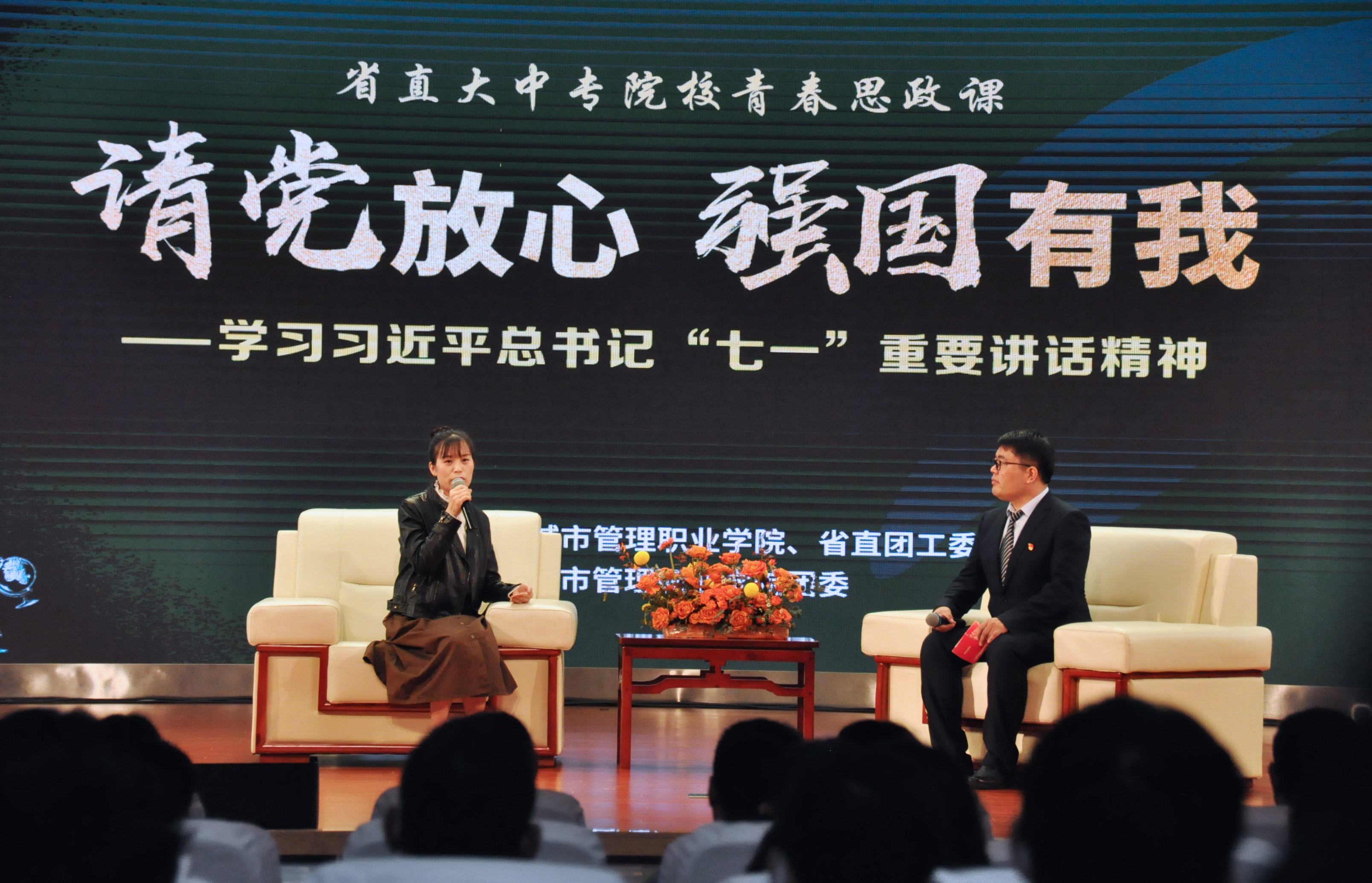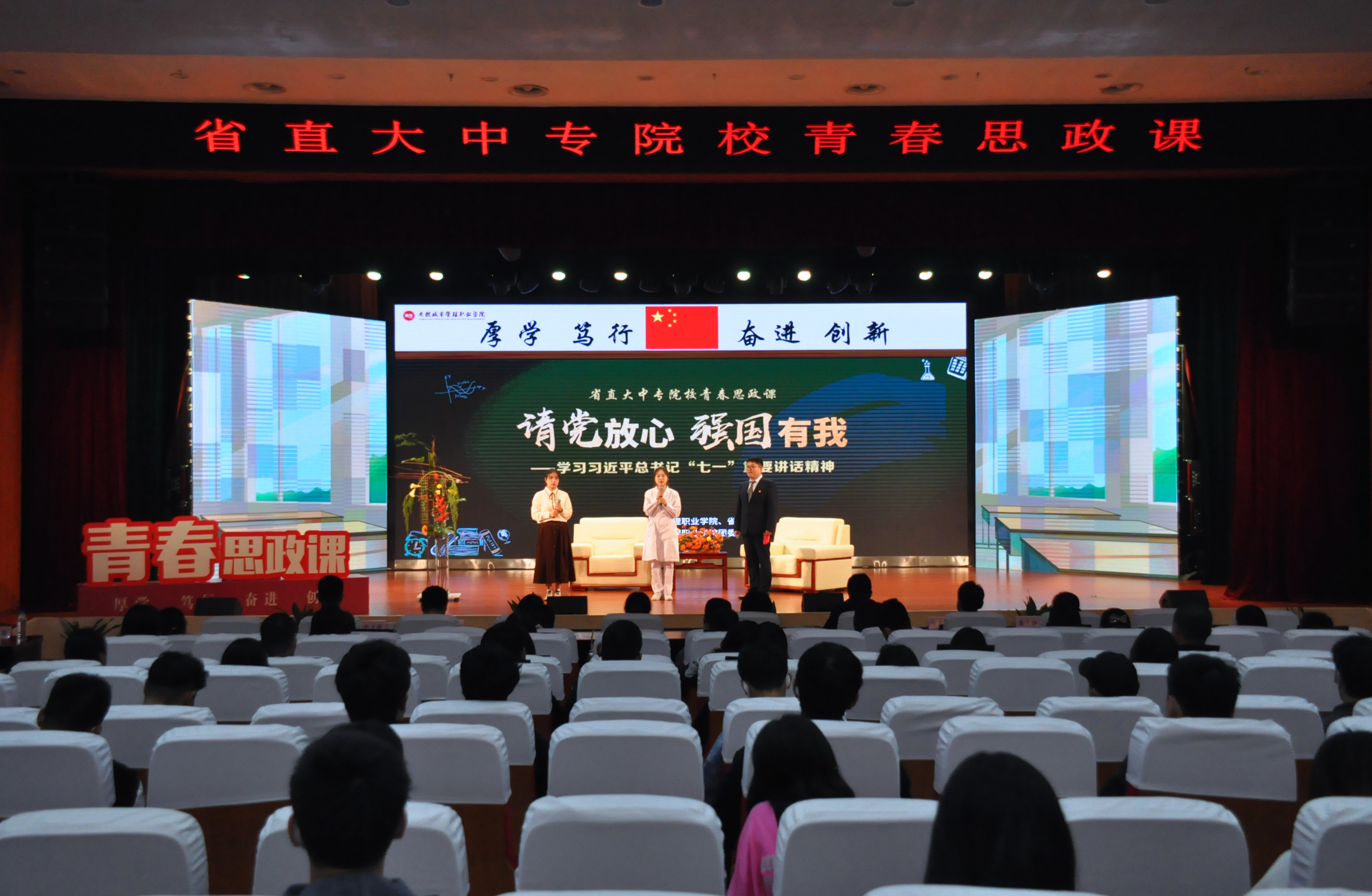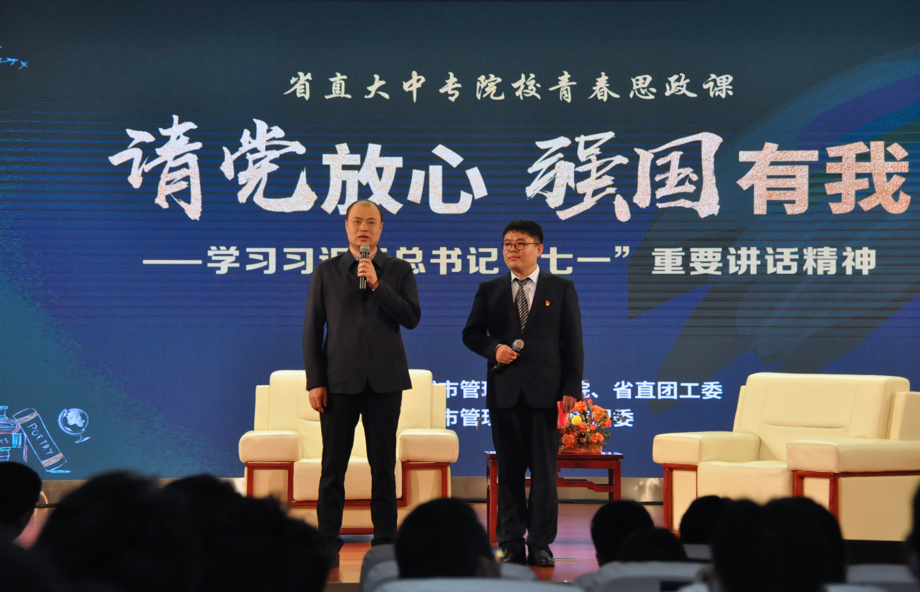 10月15日上午,学院与省直团工委主办、院团委承办的省直大中专院校青春思政课(示范课)活动在我院报告厅举行。省直机关工委副书记谢兵,团省委副书记郑兰荣,我院党委书记张明辉及33所省直大中专院校团组织负责人出席活动,学院师生代表200多人现场聆听。