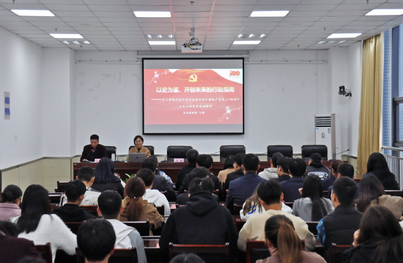 为进一步学习宣传贯彻习近平总书记“七一”重要讲话精神,持续深入推进党史学习教育, 10月21日上午,学习习近平总书记“七一”重要讲话精神专题宣讲会在综合楼303会议室举行,中共安徽省委讲师团教研室副主任、二级调研员马静作专题宣讲,学院60余名青年师生代表现场聆听了宣讲报告。