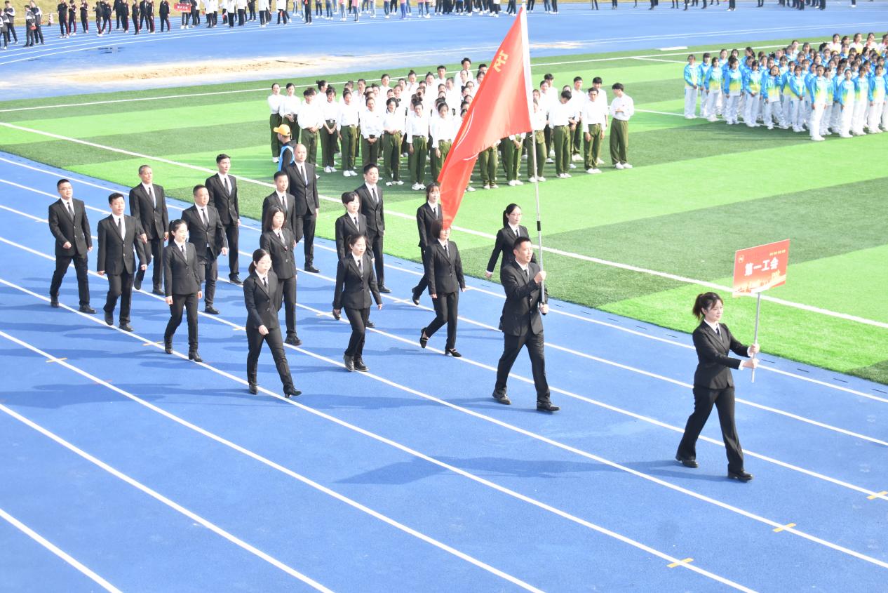 随后,各二级学院、中专部的学生方阵和教职工代表队方阵精神抖擞地依次迈进会场,独特的职业服装、激情的拼搏口号,充分展现了朝气蓬勃、健康向上的精神面貌。各方阵的特色表演用创意表达着青年学子爱党爱国、敬业奉献的赤诚之心,各分工会的教职工方阵成了本次入场式的一大亮点。