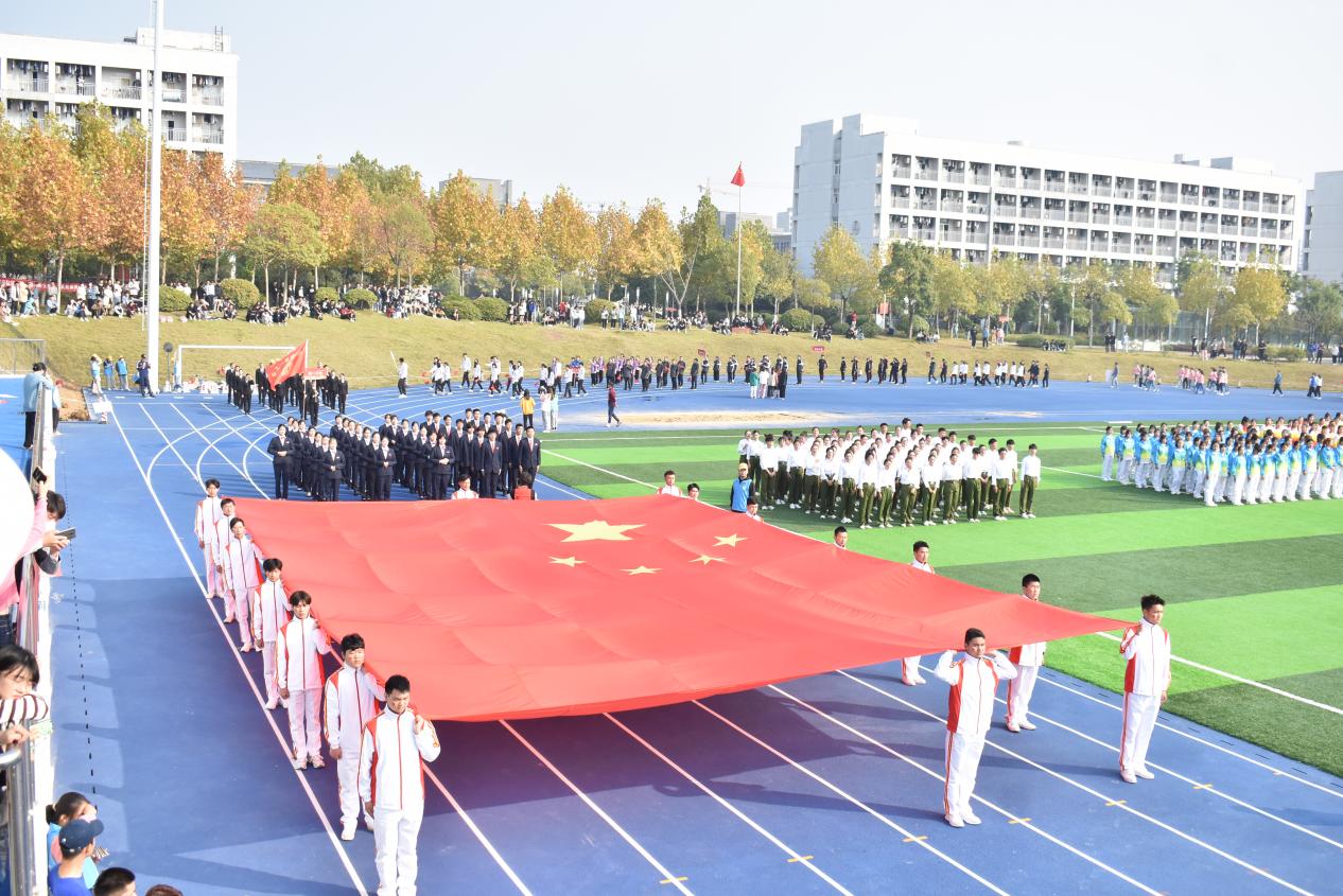 伴随着激昂的运动员进行曲,校国旗护卫队护卫着鲜艳的五星红旗和校旗步入会场,开幕式正式开始。