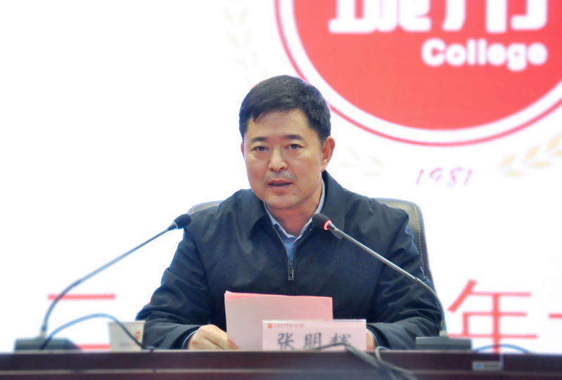 大会在雄壮的国歌声中拉开帷幕。张明辉代表学院对大会的胜利召开表示热烈祝贺!他充分肯定了本年度学生会组织的相关工作,并指出2021年是中国共产党成立100周年,也是我院建校40周年,希望全院青年学生要坚定理想信念,立志成才报国;要坚持勤奋学习,锐意进取;要磨砺顽强意志,勇于承担使命,做走在时代前列的奋进者、开拓者、奉献者。