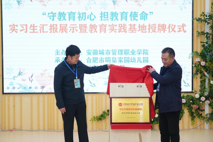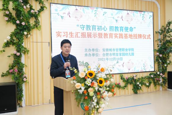 12月10日,安徽现代城市职业教育集团学前教育专业群与瑶海区幼教集团举行教育实践基地授牌仪式暨实习汇报展示活动,本次活动由合肥市瑶海区明皇家园幼儿园承办,并同步线上直播。瑶海区教体局党委委员陈彪、学前办副主任黄万本,我院党委书记张明辉,招就办、学前教育学院等部门负责人以及瑶海区各公办园园长代表参加了会议。