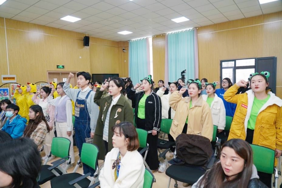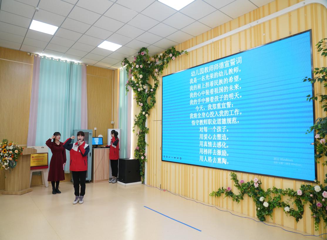 授牌仪式后,合肥市明皇家园幼儿园老师带领参会的全体实习生们进行师德师风宣誓:一份责任、一份誓言、一份使命,坚守职业道德,用心用爱去诠释幼儿园教育工作,努力做一名合格的幼儿教师!