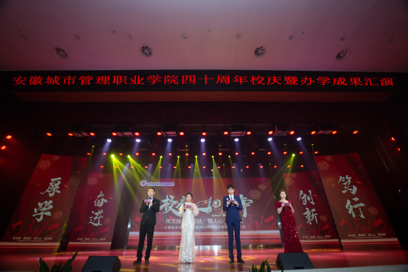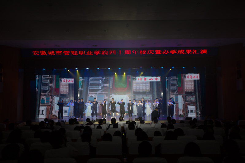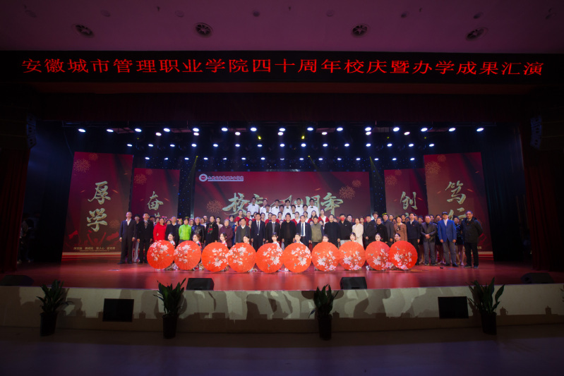 12月22日下午,安徽城市管理职业学院四十周年校庆暨办学成果汇演在新站校区报告厅隆重举行。省直机关工委副书记朱宗庄,经济与信息产业厅二级巡视员左申友,院党委书记张明辉,院长刘瑾,副院长章小槟,纪委书记秦少锋,副院长聂宗瑶与来自全国各地的校友、全体师生们共同观看了演出。