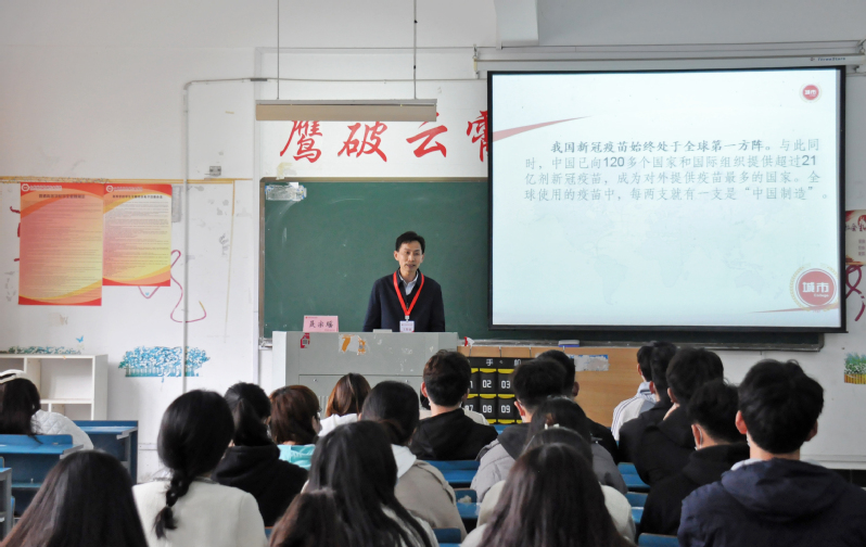 课上向全体师生宣讲了国家、安徽省和合肥市的疫情防控政策和要求,介绍了新型冠状病毒的基本知识和传播特点,分析了当前国内外疫情严峻形势,通报了几起国内校园聚集性疫情典型案例,满怀温度地引导学生在思想深处认识到当前疫情防控严峻性,理解学院疫情防控的各项规定,掌握疫情防控的有效措施,克服厌战情绪,消除麻痹思想、侥幸心理,自觉做好自身防护。