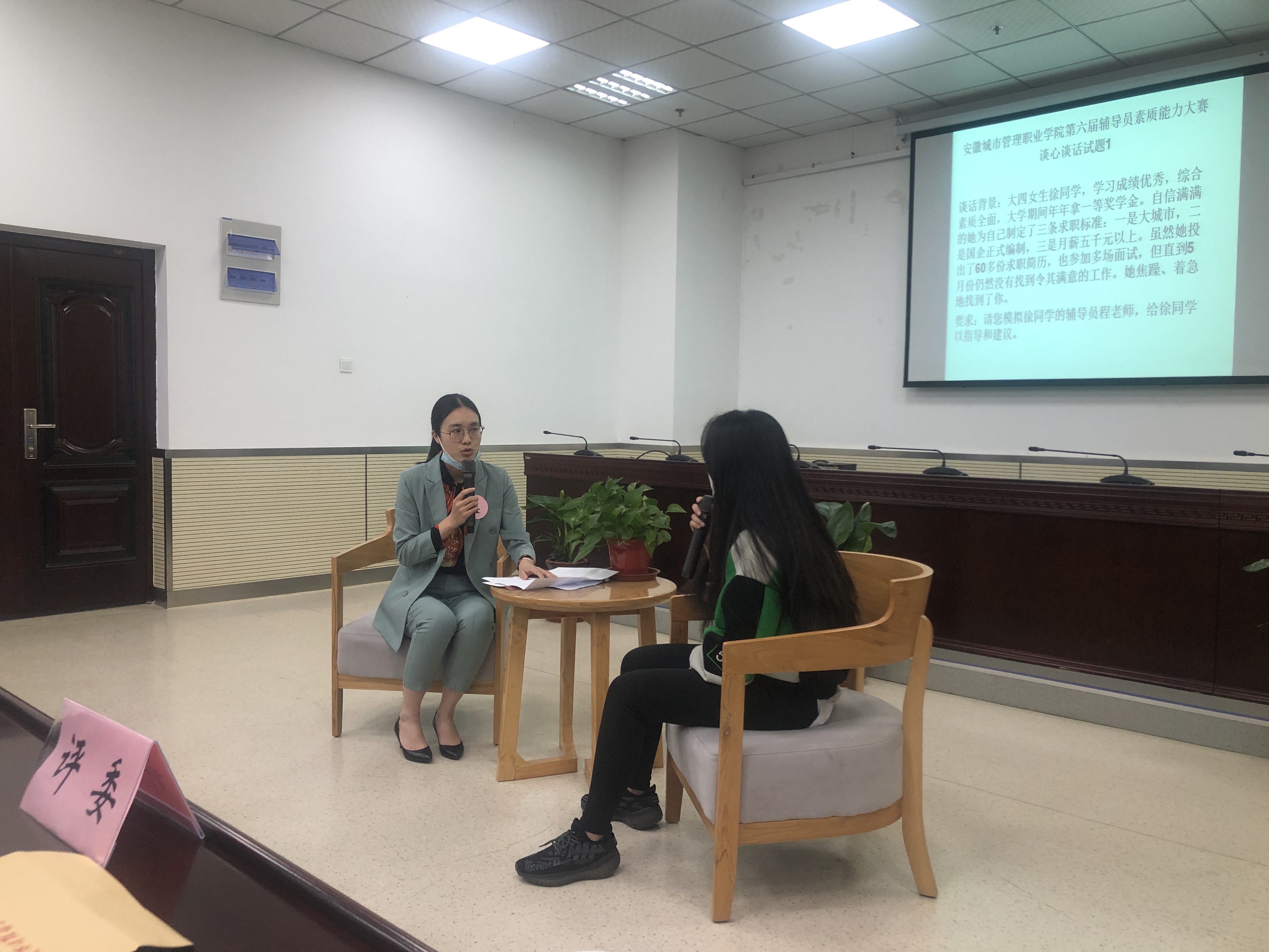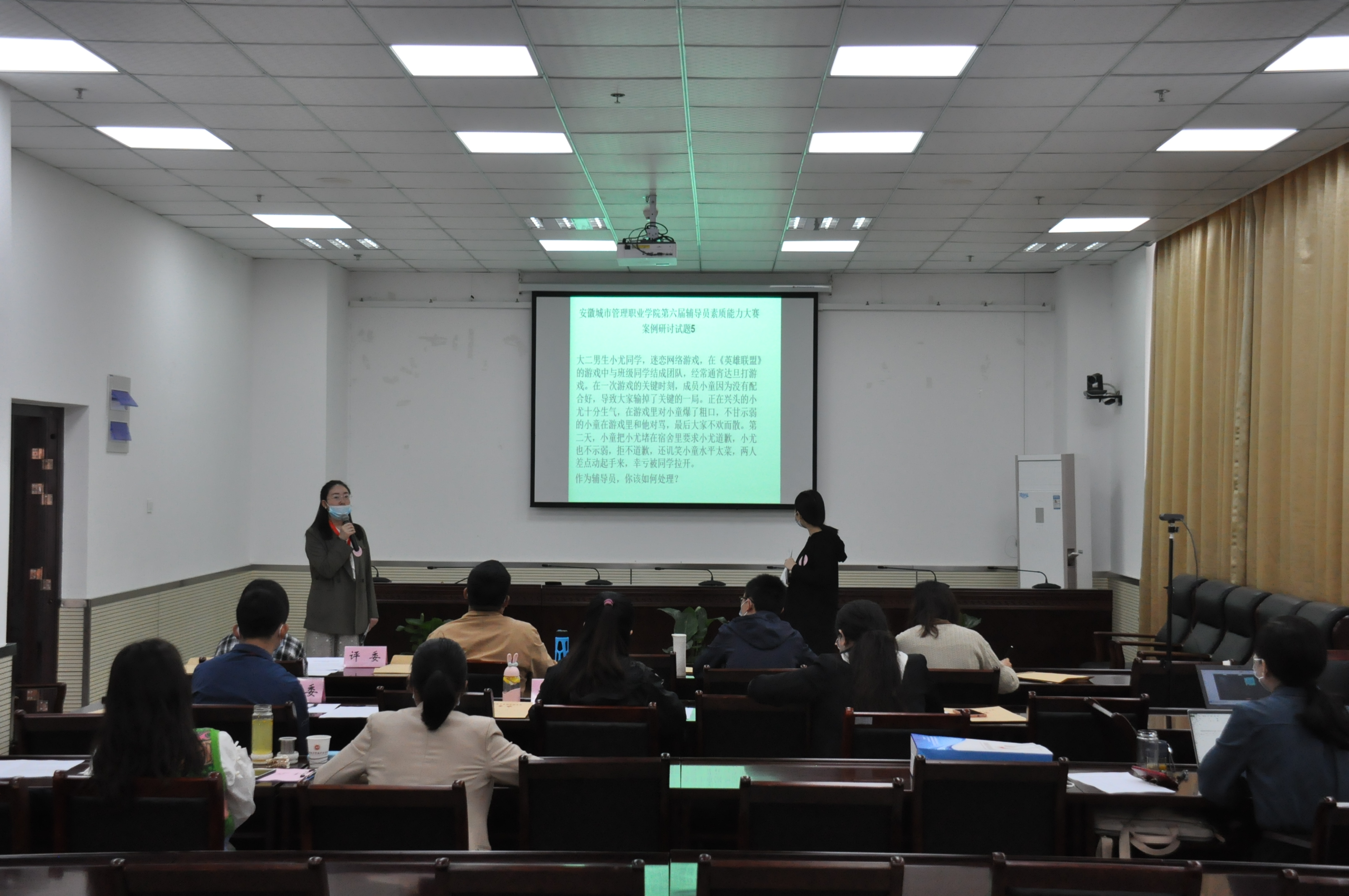 本次大赛从基础知识、案例研讨、谈心谈话三个方面综合考察辅导员的理论素养、业务知识、语言表达、思想教育、心理辅导、日常事务处理及疫情防控等知识与技能。基础理论知识考核采取笔试方式,现场赛包括案例研讨与谈心谈话两个环节。