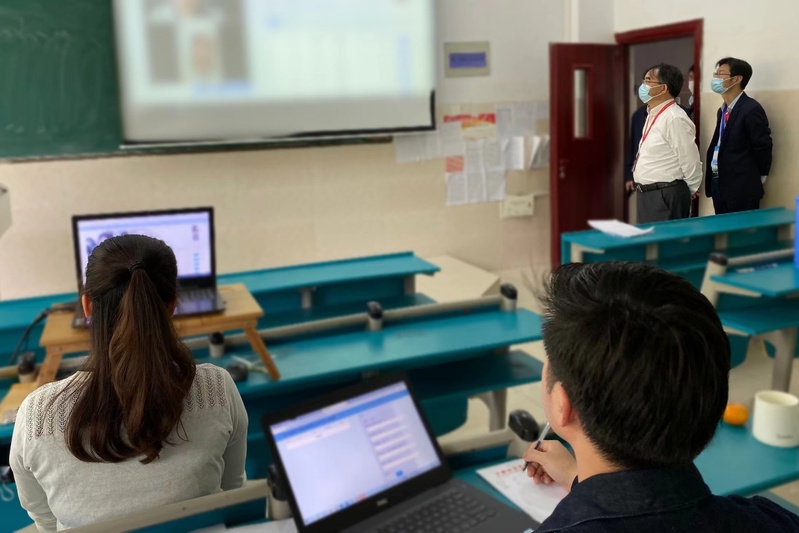 刘瑾一行实地督查了各考场疫情防控、考风考纪、技术支持、后勤保障等情况。他指出,教务处一方面要做好管理,履行分类招生考试主体责任;另一方面更要做好服务,及时了解考场工作人员需求,收集考场工作人员对考试流程、考试平台的相关意见与建议,提高解决问题的效率,促进平台和流程的进一步完善与优化。
