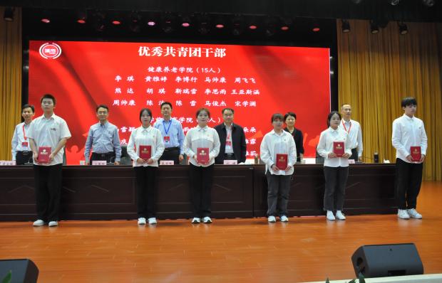 5月4日下午,学院“喜迎二十大 永远跟党走 奋进新征程”暨2021年度共青团系统表彰大会在新站校区西辅楼报告厅举行。省直团工委书记卞国辉应邀出席大会为受表彰个人和集体颁奖,学院党委书记张明辉出席会议并讲话,会议由学院院长刘瑾主持。学院领导章小槟、秦少锋、聂宗瑶,学生处负责人、院团委全体成员、各二级学院(中专部)党团组织负责人、受表彰学生代表参加会议。