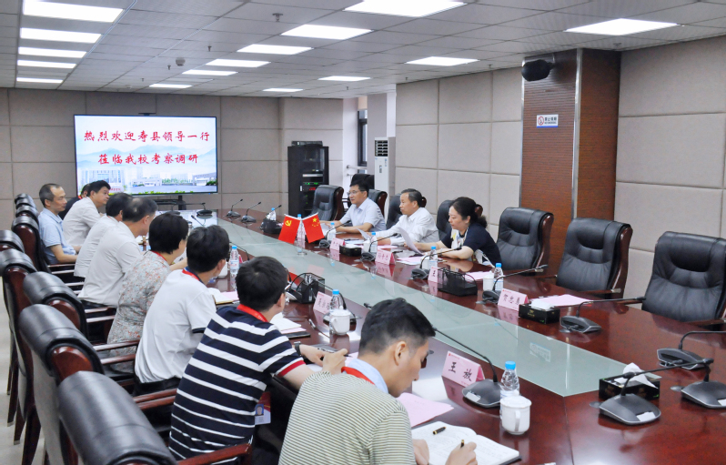 6月13日下午,寿县县委书记牛方括、县委副书记、县长孙奇志、新桥国际产业园党工委书记赵德兵和县直相关部门负责同志应邀来我院调研指导工作,省直机关工委副书记朱宗庄、学院院长刘瑾陪同调研。