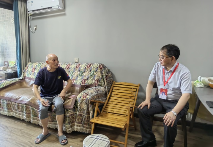 老党员端昌生是在党50年以上的老党员,去年被省直机关授予“光荣在党50年”荣誉称号,学院还对其光荣事迹进行了重点视频采访宣传。学院院长刘瑾来到他的家中,对他为学校事业发展作出的突出贡献表示衷心感谢,希望他老有所为、老有所乐、健康长寿,叮嘱他保重身体,安享晚年。