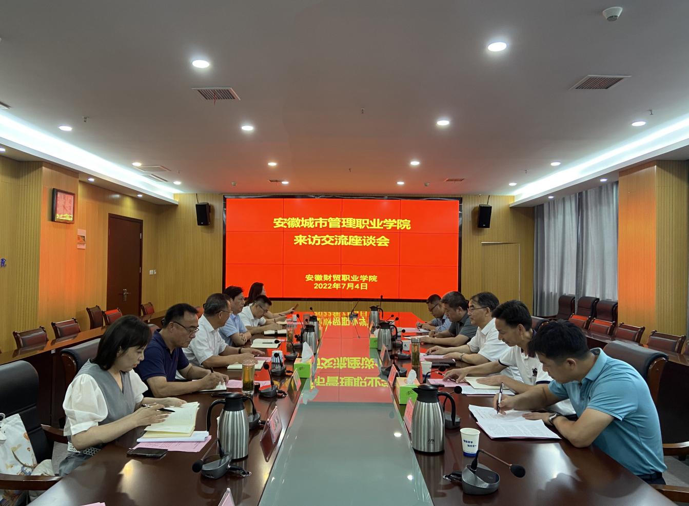 7月4日下午,学院院长刘瑾带队前往安徽财贸职业学院进行考察交流。安徽财贸职业学院院长刘银国主持召开交流座谈会。