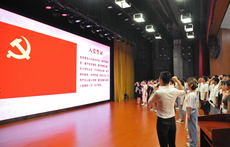 典礼最后,全体预备党员进行了庄严的入党宣誓。他们佩戴党员徽章,面向党旗,紧握右拳,庄严宣誓,表明自己对党忠诚、为党的事业奋斗终身的决心。(文/党政办公室 图/图文信息中心)