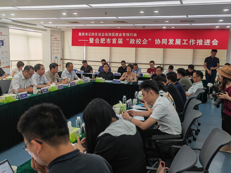 为贯彻落实教育部高校毕业生就业工作决策部署,开拓更多就业岗位,提供精准就业信息,搭建高质量就业平台,7月18日下午,学院院长刘瑾前往新安人才网参加安徽省大中专毕业指导中心组织的校企对接座谈会。安徽省大中专毕业指导中心副主任王素苗、新安人才网董事长兼总经理何德球、合肥比亚迪汽车有限公司、安徽安利材料科技股份公司、安徽晶润光电科技有限公司、安徽国风新材料有限公司、合肥国轩科技有限公司、合肥伽帝芙实业集团、合肥新东方培训学校有限公司、合肥百帮人力资源有限公司等10家企业代表参会。