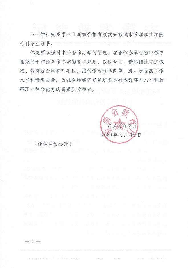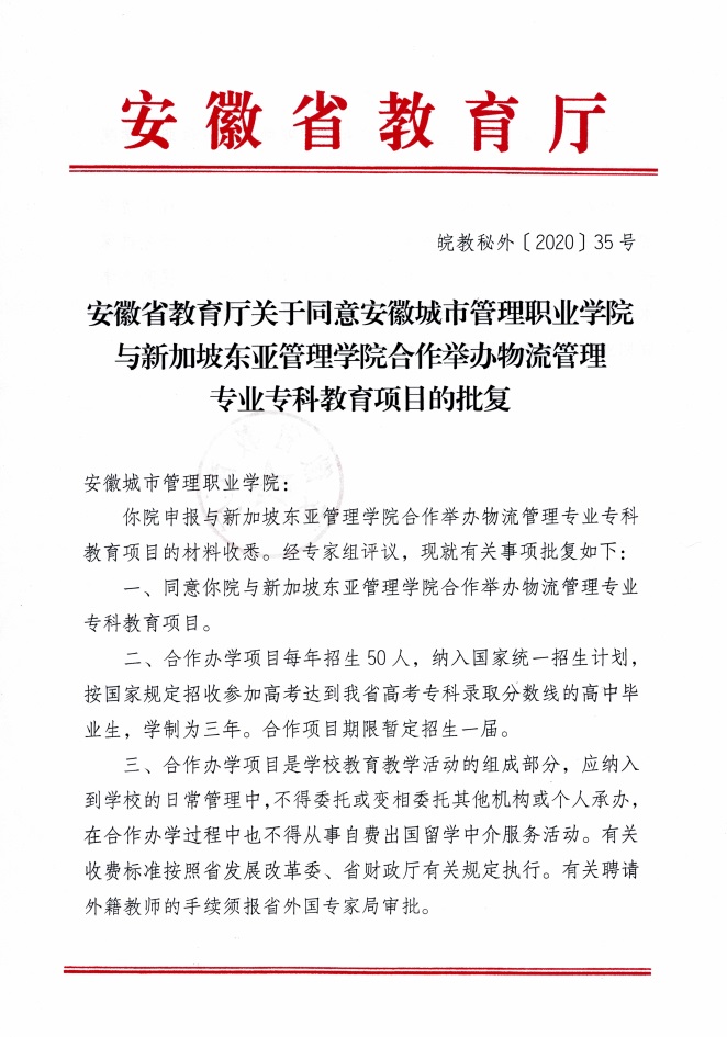 与新加坡东亚管理学院开展中外合作办学项目教育厅批文