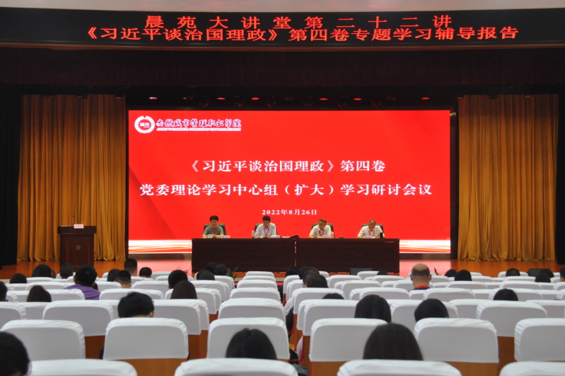 8月26日上午,学院召开党委理论学习中心组学习研讨(扩大)会议暨晨苑大讲堂第22讲,邀请了省直机关工委讲师团四级调研员、省委讲师团青年宣讲名师李耀作学习《习近平谈治国理政》第四卷专题辅导报告。学院党委理论学习中心组成员及党员教师200余人参加会议。会议由党委书记张明辉主持。