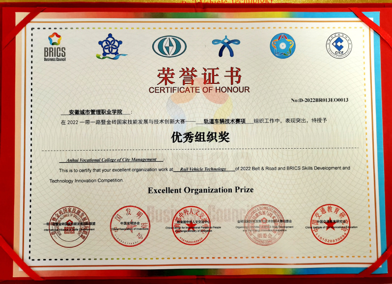 近日,2022年金砖国家职业技能大赛“轨道车辆技术”赛项(国内赛)圆满落幕。我院轨道交通学院学生常刚、王子杰代表队荣获大赛二等奖,指导教师刘春霞、郭书恒被评为“优秀指导教师”,学院获“优秀组织奖”。