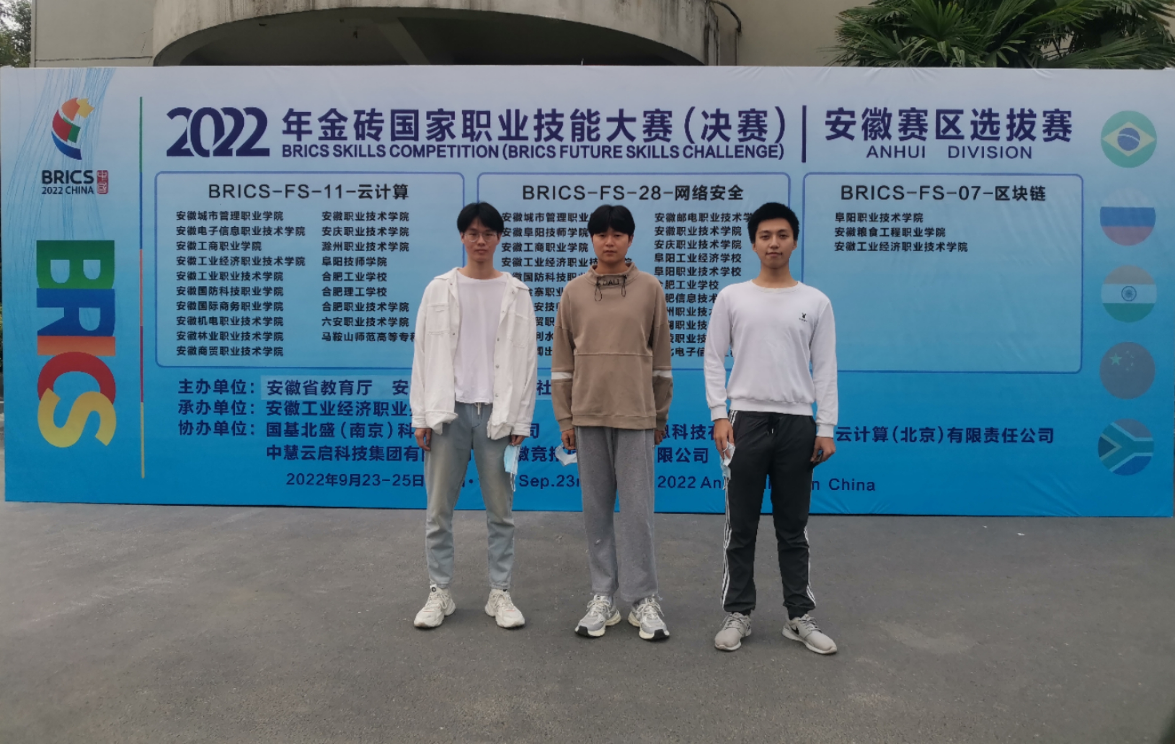 与此同时,我院信息技术学院吴棵、余洋和江叶汉等3名同学参加了2022年金砖国家职业技能大赛(决赛)安徽省选拔赛网络安全赛项,并获得全省第2名的好成绩。